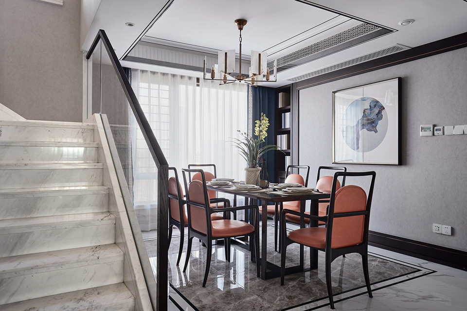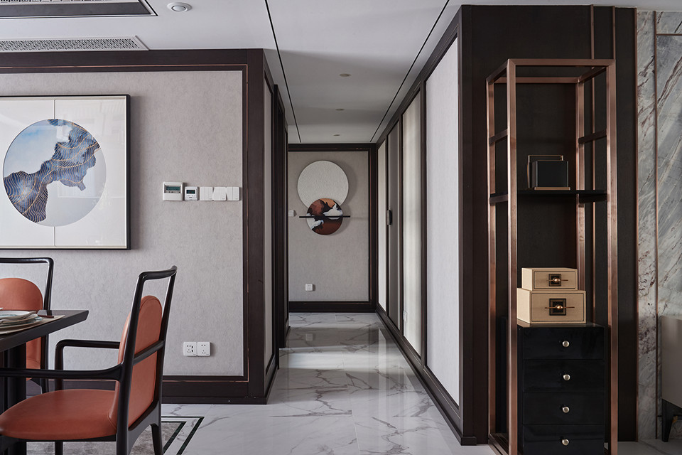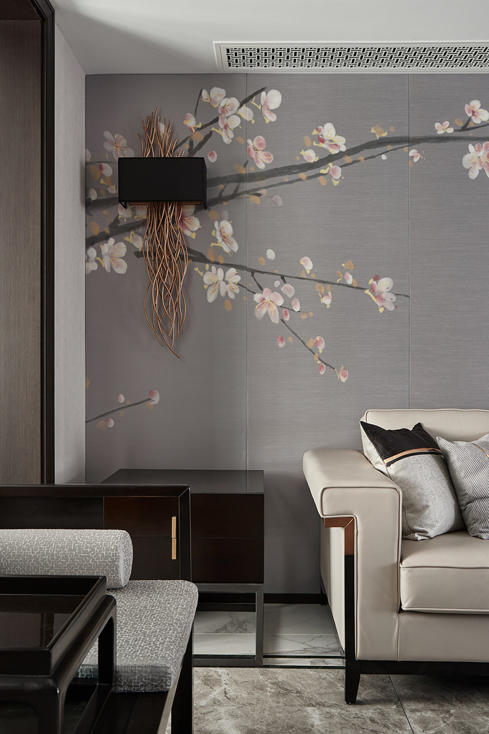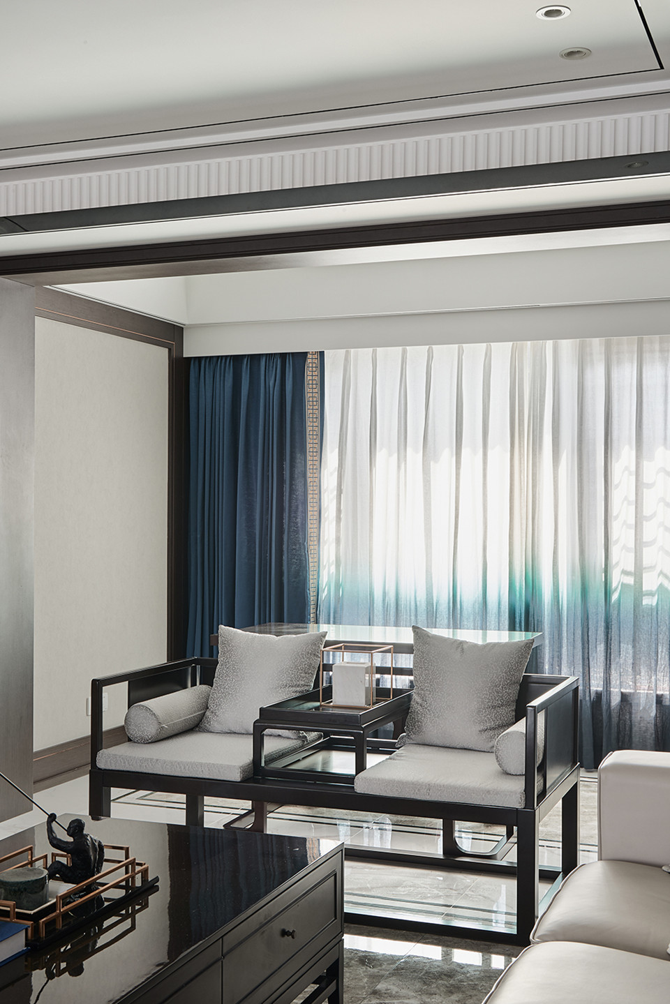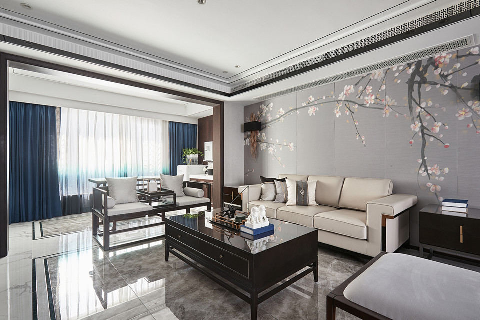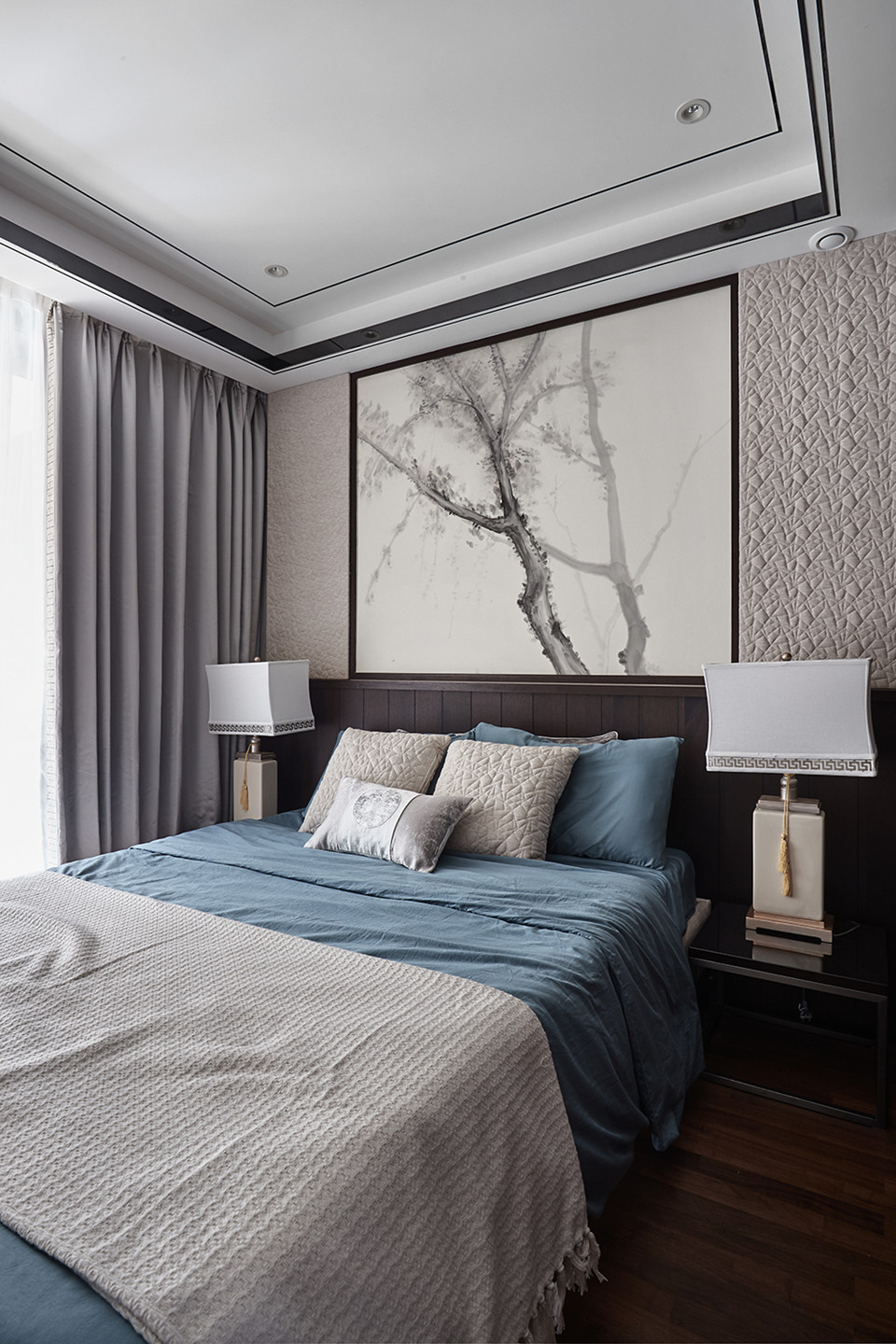 新中式风格在设计上延续了明清时期家居配饰理念,提炼了其中经典元素并加以简化和丰富,在家具形态上更加简洁清秀,同时又打破了传统中式空间布局中等级、尊卑等文化思想,空间配色上也更为轻松自然。
