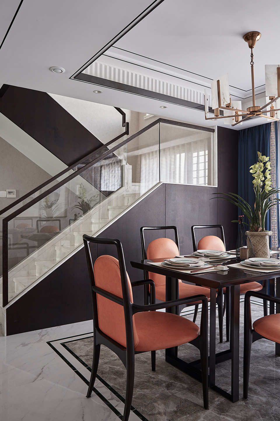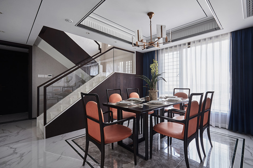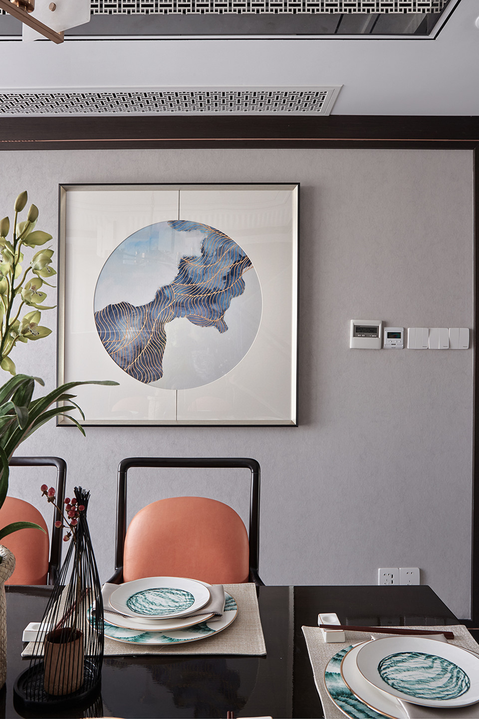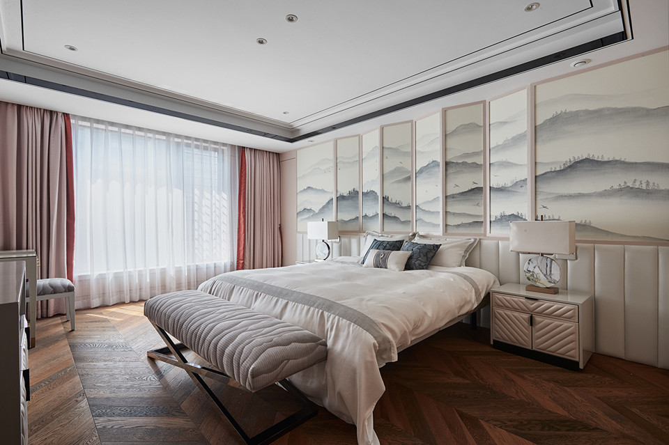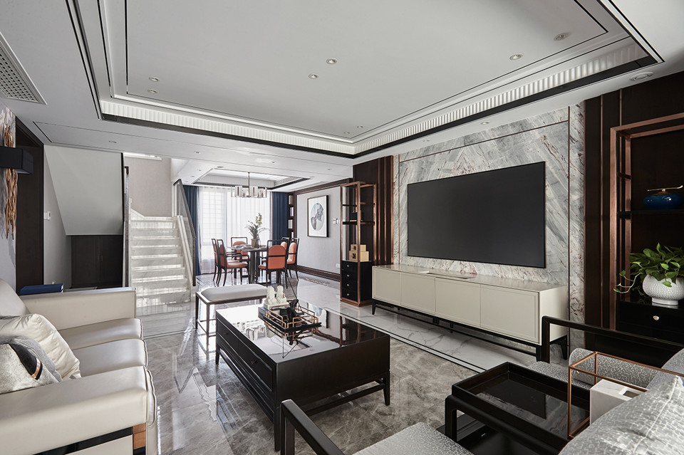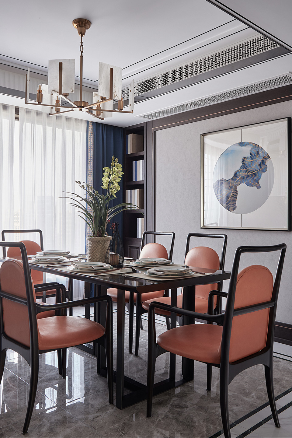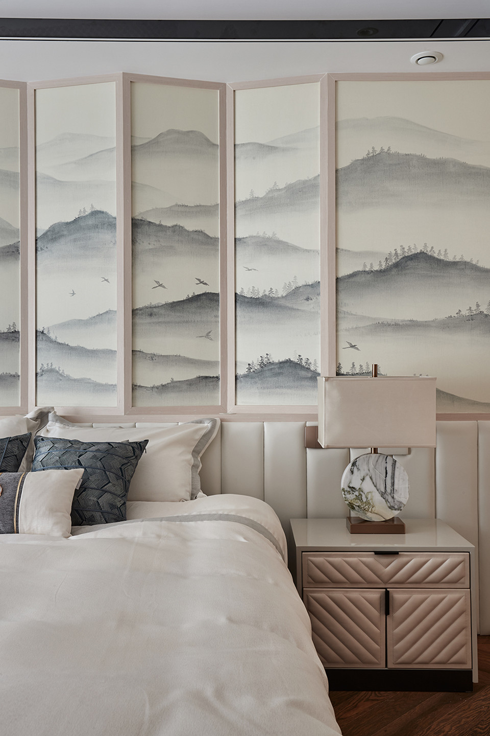 新中式风格在设计上延续了明清时期家居配饰理念,提炼了其中经典元素并加以简化和丰富,在家具形态上更加简洁清秀,同时又打破了传统中式空间布局中等级、尊卑等文化思想,空间配色上也更为轻松自然。